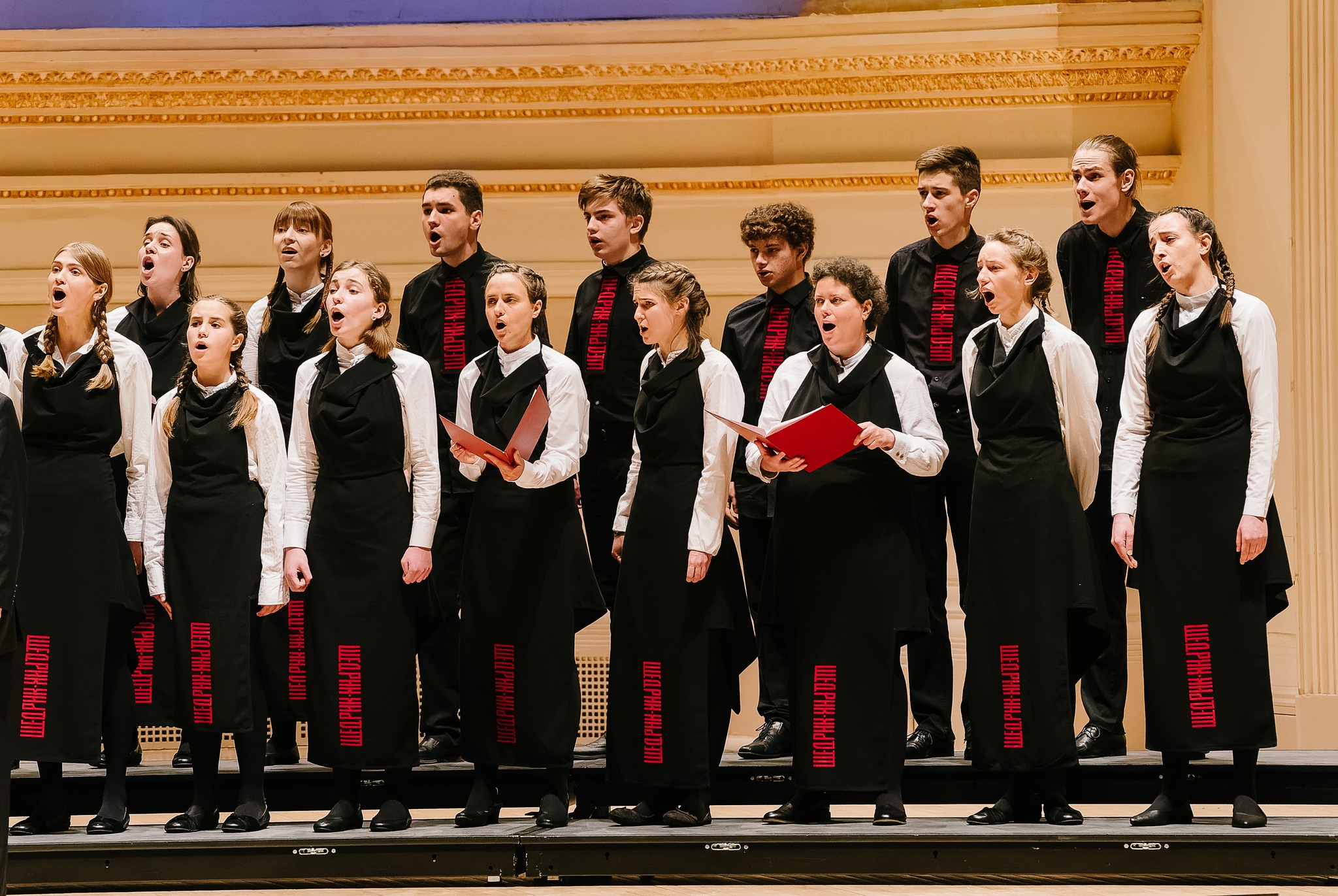 Розмаїття сучасної хорової музики натомість віддали на поталу молодим — українському дитячому хору «Щедрик» (диригентка Маріанна Сабліна). І ніде правди діти, їхній виступ був найочікуванішим тут, а виконання — більш ніж гідне сцени Карнегі Гол. Поява хору «Щедрик» у першому відділі була обрамлена творами «Somewhere in my memory» Джона Вільямса та жаданим «Щедрик / Carol of Bells» (музика Миколи Леонтовича, обробка Пітера Вільховського) в компанії двох інших хорів. Обидві пісні разом звучать у стрічці «Сам удома», що резонує зимово-різдвяній тематиці концерту. Поміж ними — різнобарвні за стилістикою хорового письма твори Ганни Гаврилець, Вікторії Польової та Валентина Сильвестрова. Складні й вишукані за гармонією, динамікою їх юні хористи співають досконало та навіть напам’ять.