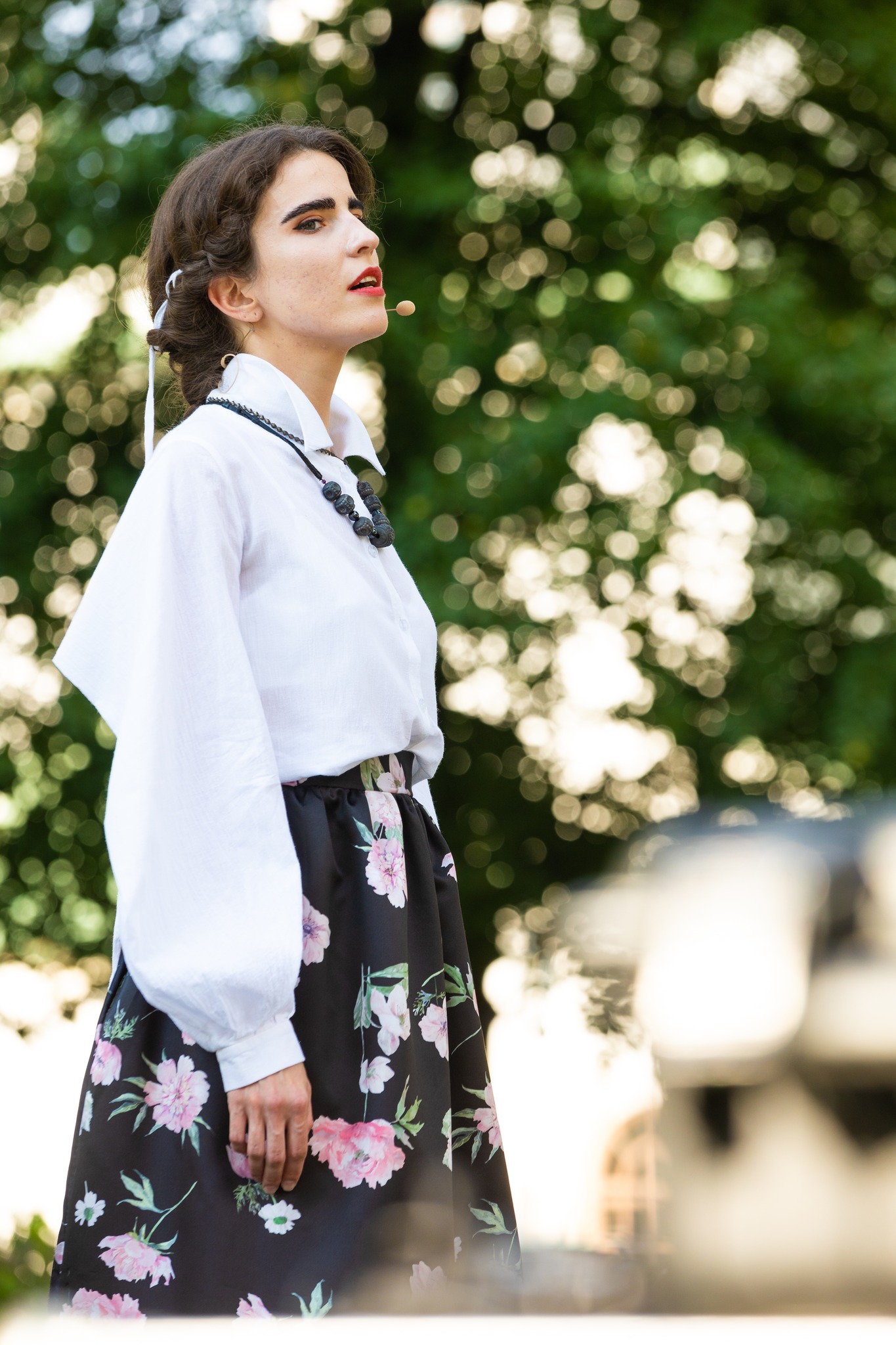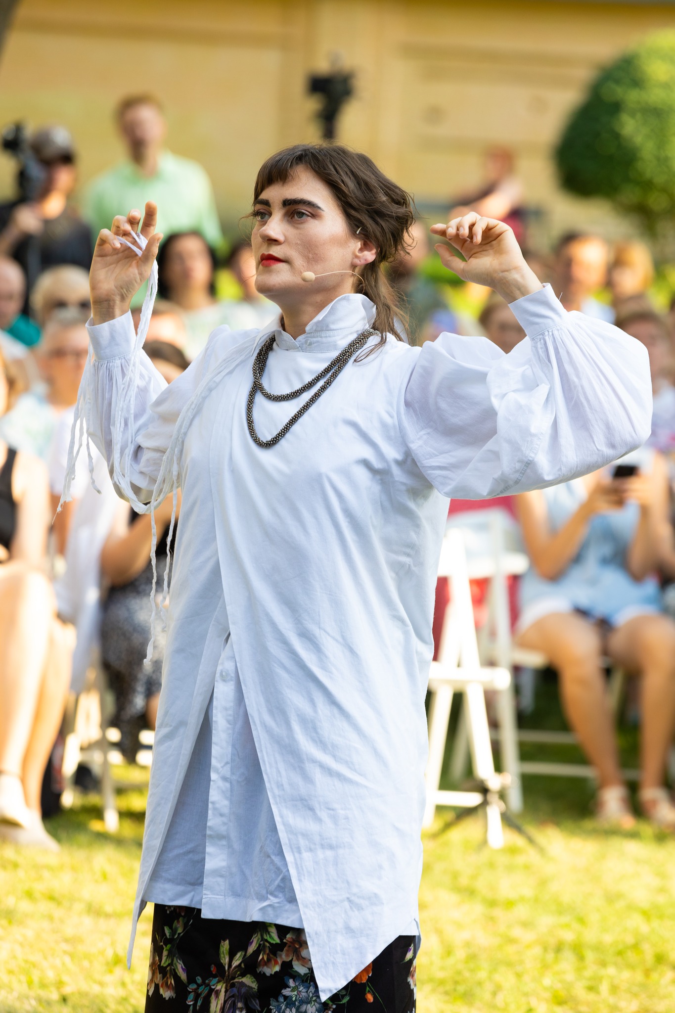 Спроба досягти вільности на сцені співачками таки була здійснена. Це те, що підпадає під термін «вистава» у визначенні виду цієї події. Власне, театральна компонента реалізовувалася через свободу поводження виконавиць на сцені. Вони могли стояти, могли сидіти, могли ходити сценою і навіть повертатися до глядача спиною. Могли підіймати руки і крутитися при тому. Могли й швидко кружляти, що, втім, було не вельми гарною ідеєю у поєднанні зі співом лірики: дихання перехоплювалося, і характерні для цих пісень тривалі фрази обривалися. Загалом театральна компонента концерту радше скидалася на тренаж для співачок задля подолання внутрішніх зажимів, аніж на цікаве, наповнене будь-якими сенсами сценічне рішення.