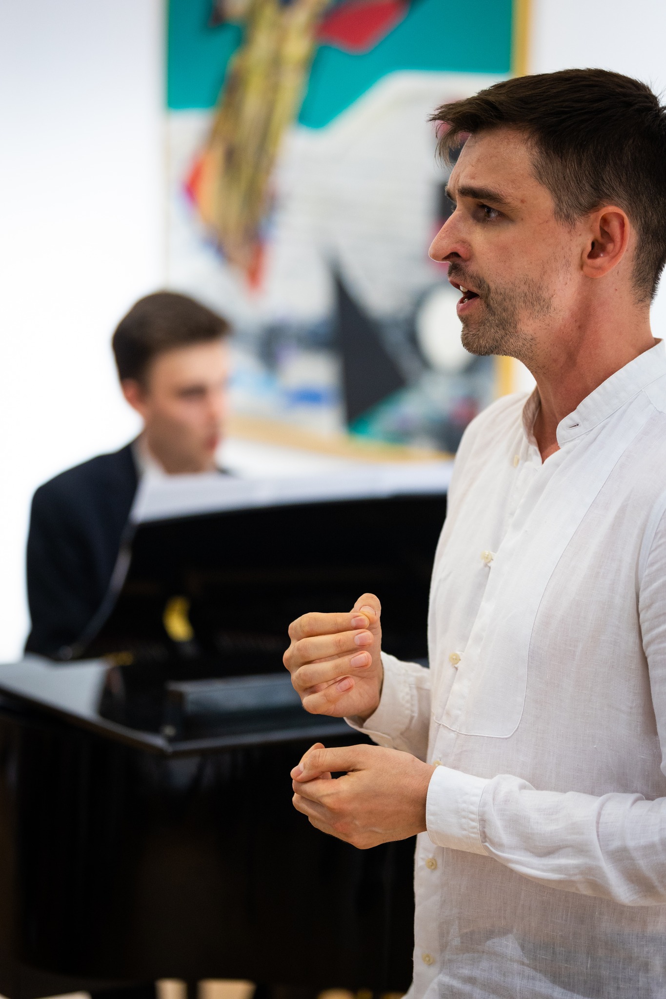 Непевні враження не розвіялися і з початком концерту. Дует Тиміш Мельник–Роман Меліш вдався сяк-так. Відчувалася неузгодженість музикантів щодо інтерпретування циклу «Нудьга» Бориса Яновського та солоспівів Павла Сениці («Останній промінь згас», «Місяць закоханий в ніч», «Ох немає йому щире слово сказать», «Я не молюсь давно», «Хата»). Ретельне осмислення композиції виконуваних творів, що свідчить про глибоку виваженість у роботі над музичним твором Романа Меліша поєднувалася із деякою непевністю у Тимоша Мельника. Він вочевидь піддався красі гармоній, мелодичної вибагливости, різноманіттю фактурних рішень — безперечно важливих якостей цієї музики, що повинні бути виявленими. Але це не єдина задача для піаніста у цьому разі, а ось, наприклад, необхідність дати можливість солістові дихати була менш зваженою. Принаймні у творах із рухливим темпом це відчувалося і відображалося тоді на непотрібній похапливості у Романа. Усе разом справляло прикре враження..