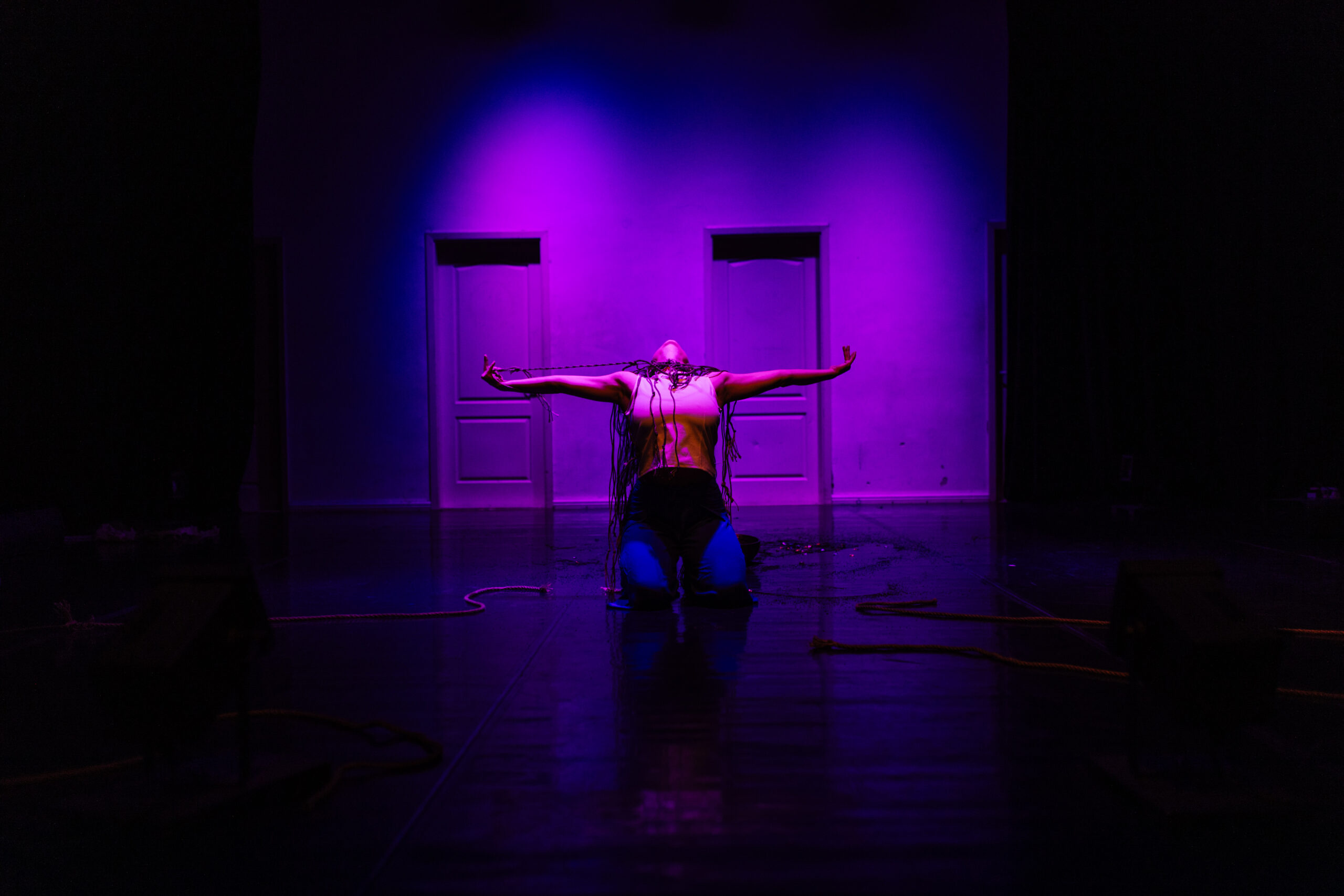 Хочу зупинитись на зовнішній естетиці вистави. Я весь час апелюю до термінів етнічність, фольклор, народна музика, традиції, але на світлинах ви, певно, помітили, що експліцитно національна атрибутика не замальовується навіть у сценічному вбранні перформерки. І це мене приємно здивувало.