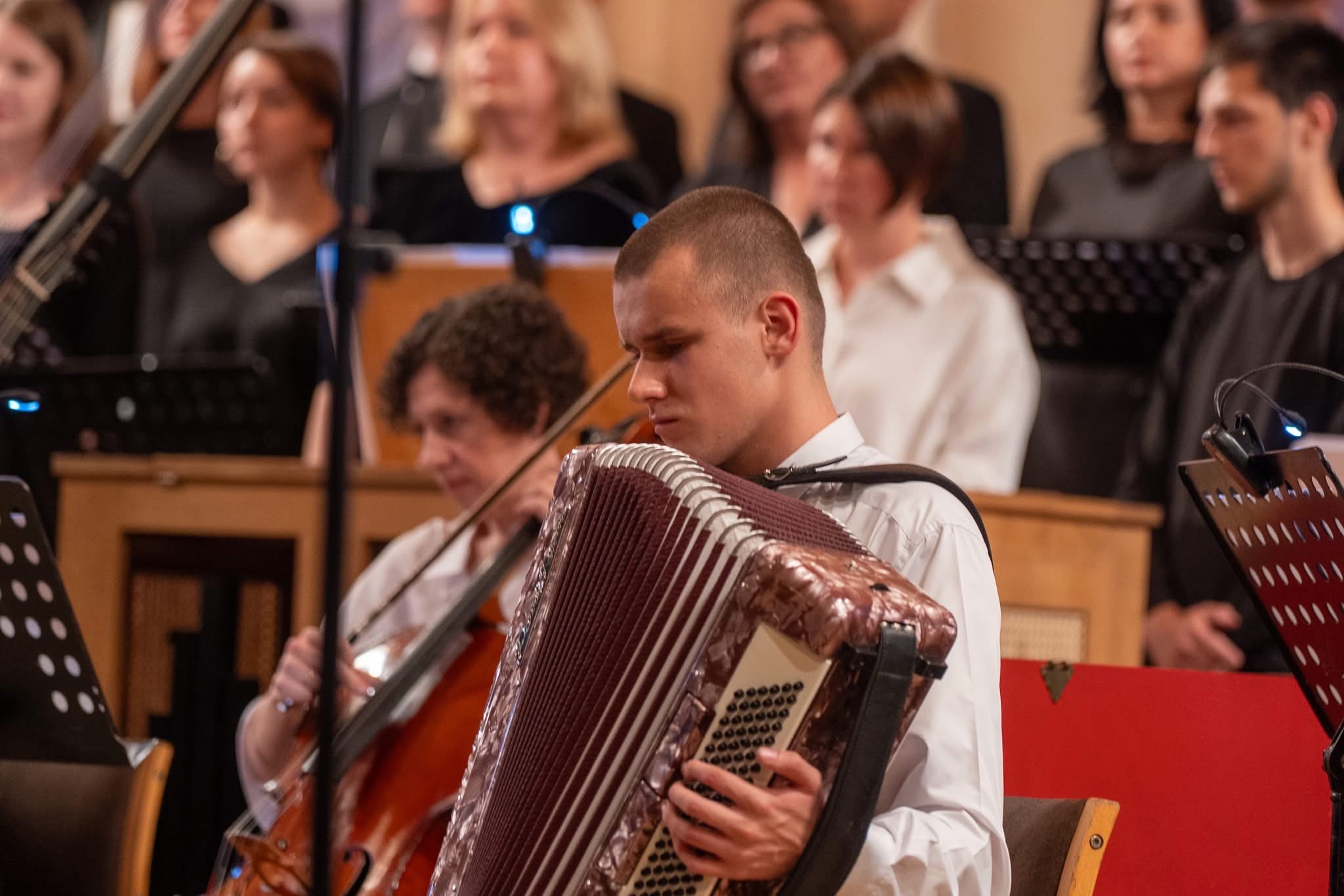 «Для мене участь у проєкті — це, перш за все, рідкісна можливість набути досвіду гри в оркестрі. Раніше я лише слухав оркестрові виконання. Грати не було складно, бо я готувався з кінця червня і тренувався вдома під фонограми. Викладач продиктував мені ноти, щоб я міг їх набрати за шрифтом Брайля та вивчити».