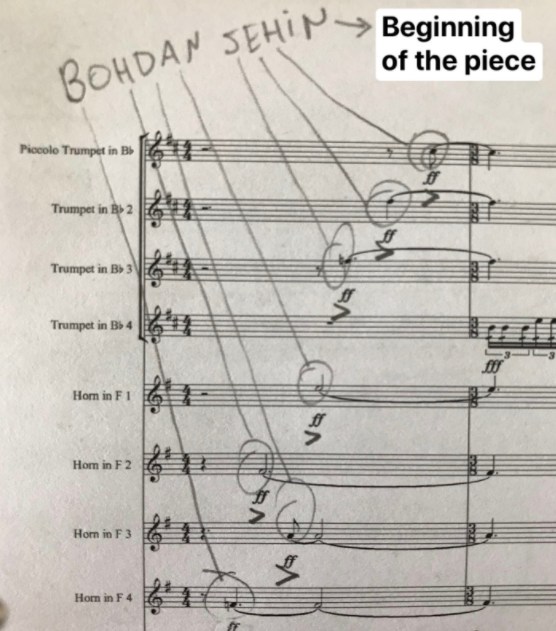 А історія з «Фанфарою» така проста! Коли я був запрошений диригувати торішнім Відкриттям, то сказав Богдану: «хей, це велика річниця і великий фестиваль! Вам треба власну фанфару для таких урочистостей!» Ну, ми тільки посміялися, але я ж замислився. Це класна традиція — як от фанфари Лютославського для Філармонії в Лос-Анджелесі. Тоді пригадав автограф, який у 2003 році Богдану дав легендарний Арво Пярт. Там він написав його ім’я нотами на нотному стані — і я використав це як початкову тему. Отже, після декількох епізодів трансформацій, розвитку, моя фанфара закінчується на унісонній ноті с — яка символізує Contrasts — і з цією ноти фестиваль і розпочнеться…»