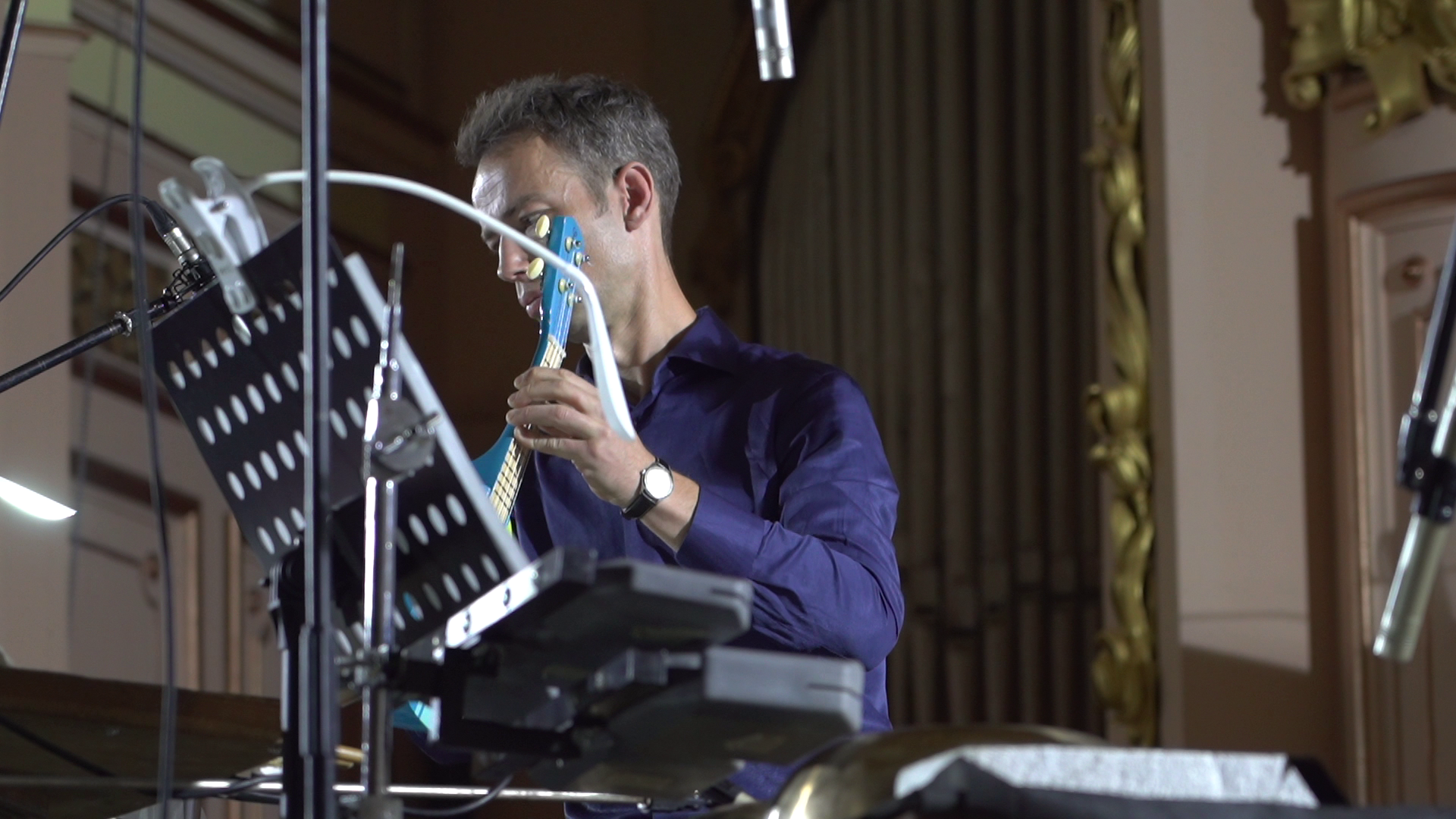 Як відомо, ЛОНСКУ (Львівська організація Національної спілки композиторів) — це колишній СУПроМ (Союз Українських Професійних Музик), яку включили в структуру радянської Спілки композиторів. З бібліотеки старих творів, які знаходяться у цьому приміщенні, я вибрав кілька нот: наприклад, Мар’яна Кузана, Вольфганга Ріма, Збіґнєва Буярського – те, що подароване спілці самими композиторами, або ті твори, які виконувались під час «Контрастів». І для мене це жест-відсилання: ми робили цей перформанс тут, в оточенні величезного архіву, в перформансі я вставляв якісь малесенькі цитати, взагалі майже не помітні у структурі, цеглинки, за які можна було б зачепитись і вибудувати щось більше. Але цей перформанс я розцінюю як перший з більшого циклу, який іще відбудеться.