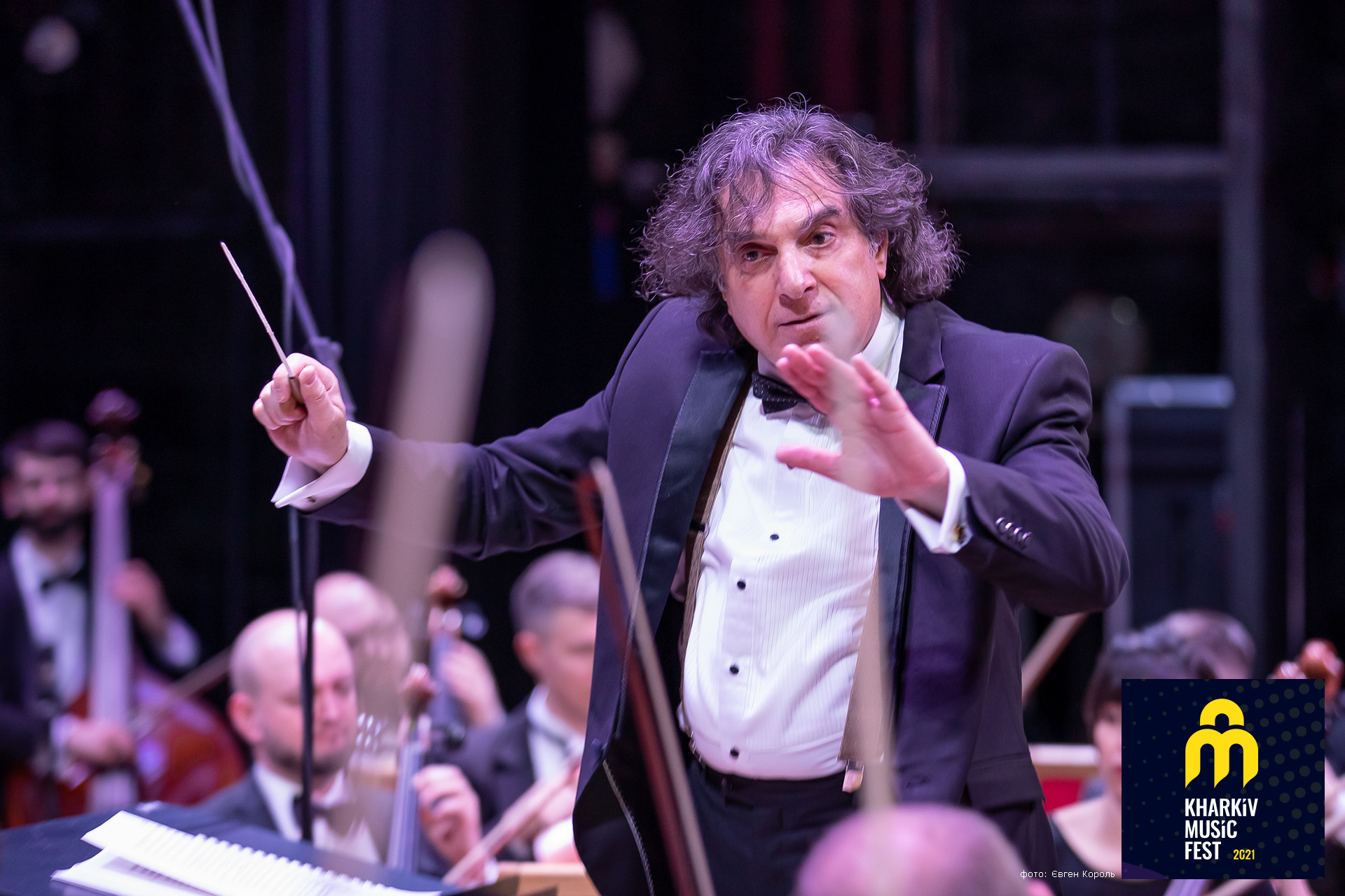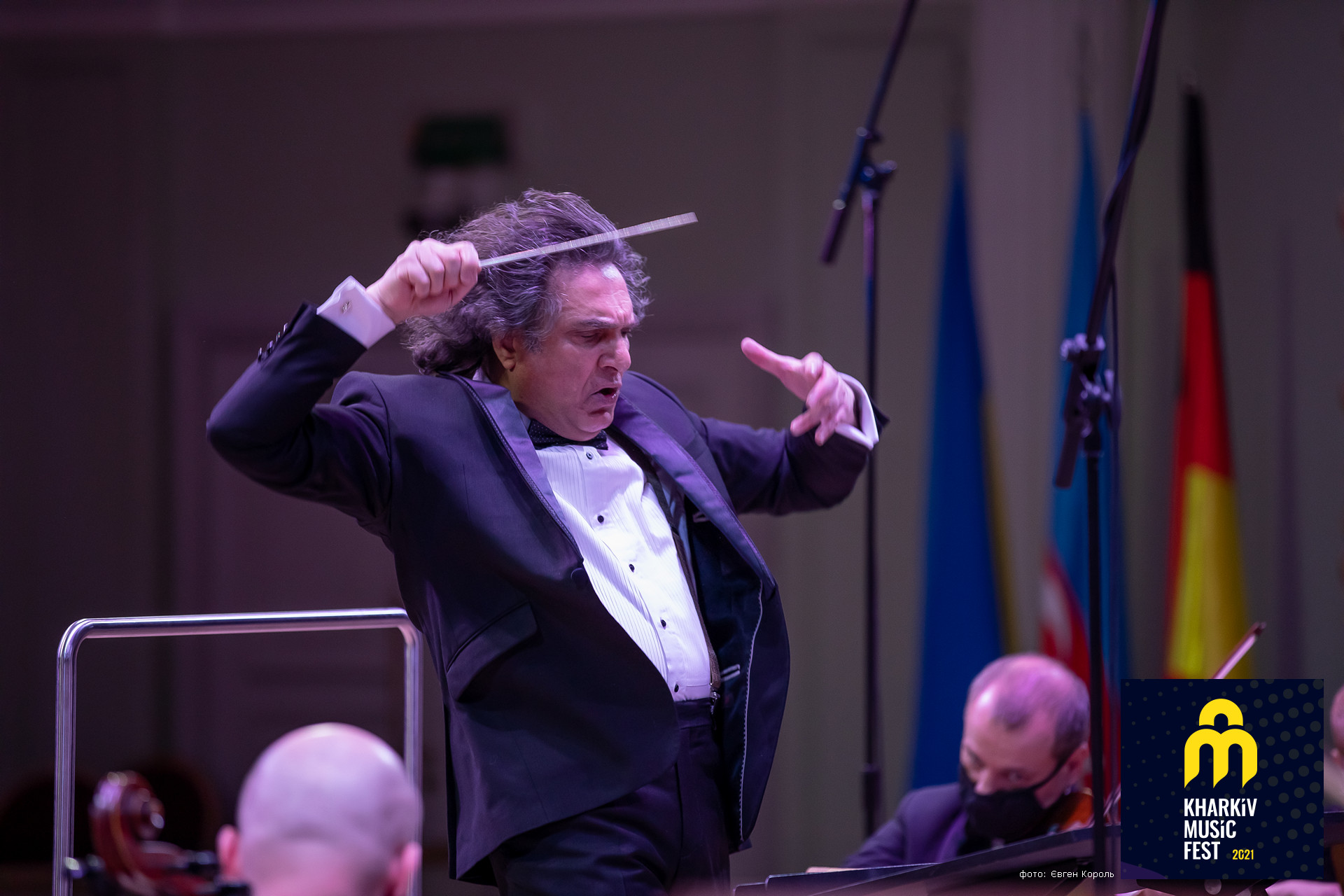 По-перше, програма. Іконічна класика, смуга перешкод та екзотична новинка — приблизно так, «у двох словах», можна її описати. Із запізненням на рік через карантинні перепони Kharkiv Music Fest-2021 проходить під знаком ювілею Людвіга ван Бетховена. Тому у програмі відкриття були П’ята симфонія та Фантазія для фортепіано, оркестру і хору. Ці твори розбавили «Карпатський концерт» Мирослава Скорика та «Азербайджанське капричіо» Фікрета Амірова. Попри те, що «Карпатський концерт», хоч і не часто, але звучить в Україні, а симфонічний Бетховен вже виконувався у Харківській філармонії цього сезону (та ж сама П’ята, а також Сьома симфонії), складність цього репертуару навіть для зіграного оркестру із «рідним» диригентом висока. Однак, рівень «челенджевості» організатори поставили вище: